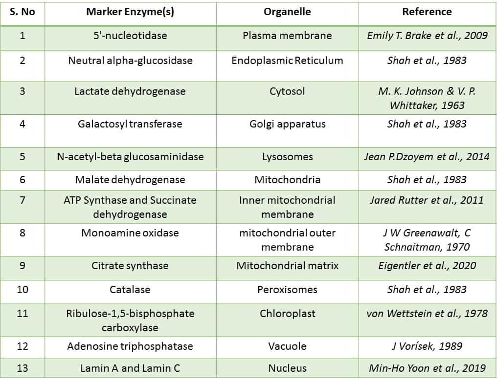In laboratory conditions, there is a generalized analogy, which uses marker enzymes as experimental tools to separate the particular organelle from others. In addition, using these marker enzymes, the cellular abnormalities within the specified tissue can be screened.